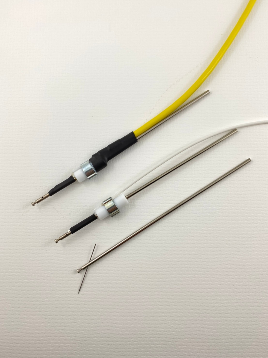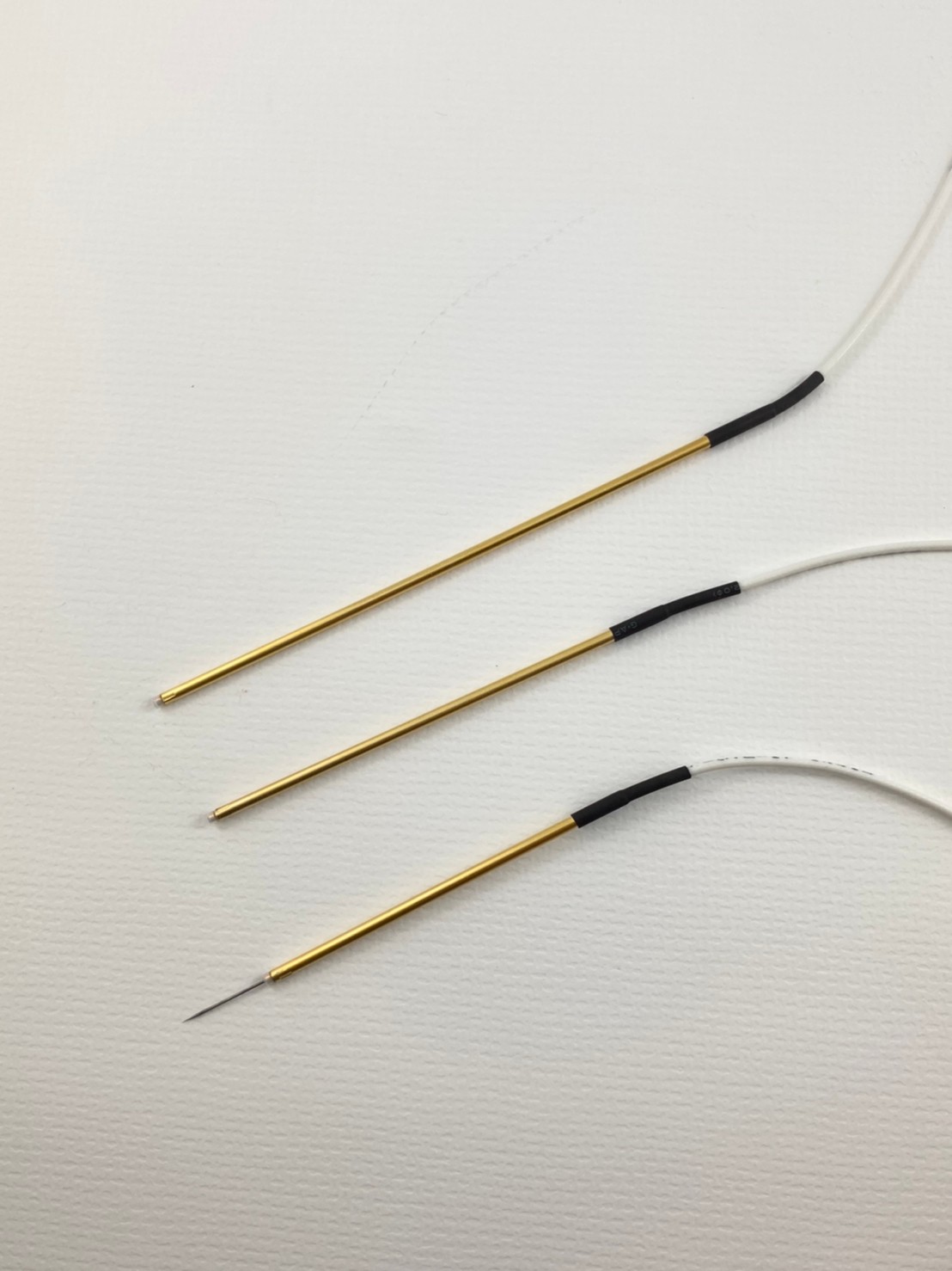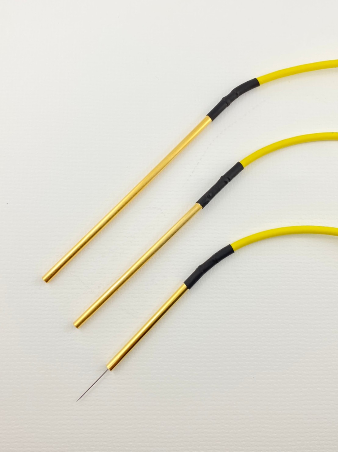 Screw-tip type: Uses a simple screw at the end to hold the probing tip which is located at 45 degree angle. It is the simplest and cheapest tip holder, and can be supplied with regular, coaxial or triaxial cable and connectors. Rod is 7.5cm and comes supplied straight as standard for you to customise or can be supplied pre-bent on request and must be stated at time of order.