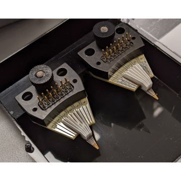Any pitch (tip spacing) from 25 to 1250 microns may be specified. The probe can be configured with Ground-Signal-Ground (G,S,G), Ground-Signal (G,S), or Signal-Ground (S,G) tip footprints. We recommend smaller pitches with a G,S,G footprint for best results.
