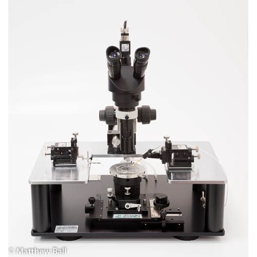 Specifications: n Chuck up/down 4mm n Steel chuck with individual vacuum switches n Linear backlash free X-Y travel n Fine position at ~10 micron resolution n Quick motion ~25mm drive per revolution n Chuck theta at 15° backlash free n Hard chrome plated platen Dimensions: n C-6 = 515mm W x 410mm D x 550mm H with microscope, 23kg with microscope n C-4 = 480mm W x 410mm D x 550mm H with microscope, 23kg with microscope | ||